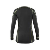 Női hosszúujjú technikai póló fekete kivitelben, zöld elemekkel. Szaggátló és frissességet biztosító anyagból készült. méret: S, M, L, XL, XXL kivitel: női anyaga: 92% poliészter, 8% elasztán, belső oldala finoman fésült súly: 230 g/m2 színe: fekete, zöld elemek