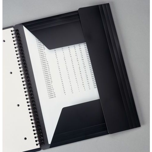 Meetingbook rugalmas és tartós, spirálkötésű polipropilén borítója biztonságban és védelemben tartja jegyzeteit és dokumentumait. Praktikus: A notebook hátoldalán három füllel és elasztikus pántokkal van felszerelve az összes dokumentum tárolására. Perforált, eltávolítható lapok a könnyű fájltárolás érdekében.