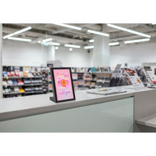 A DINOVA 13 digitális kijelző kompakt megoldást kínál nagy vizuális hatással. Az UHD kép tiszta és éles üzeneteket biztosít még kisebb helyeken is. Az ujjlenyomat-álló felület hangsúlyozza a professzionális megjelenést. Ideális recepciókra, pénztárakhoz és információs pontokhoz.
