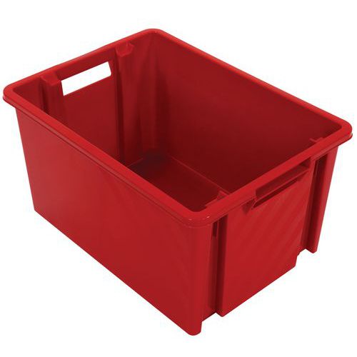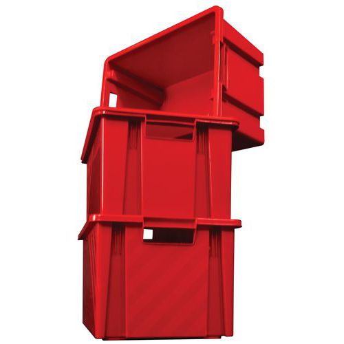 Egymásra rakható tartályok nyitott fogantyúkkal a könnyű kezelés érdekében.