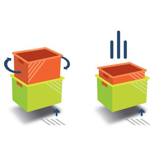 Egymásra rakható tartály fogantyúkkal a könnyű kezelés érdekében. Nagy ellenállás a mechanikai és kémiai hatásokkal szemben. Egymásra rakás lehetősége. Megerősített falak a nagyobb szilárdság érdekében.