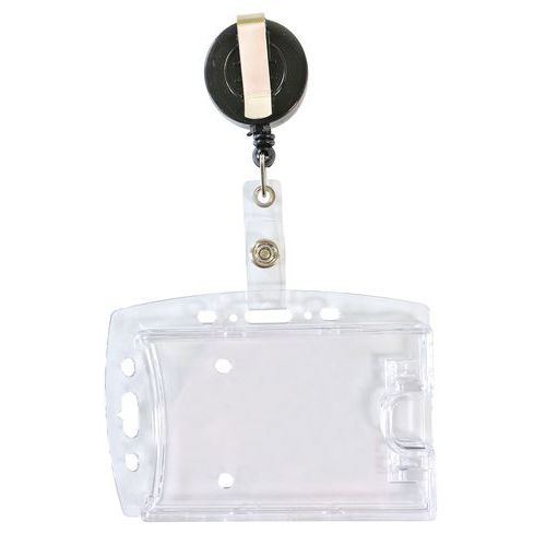 Áttetsző nyakba akasztható névjegykártya tartó csörlős mechanikával. Függőleges vagy vízszintes rögzítés a forgatható konzolnak köszönhetően. méretek ho x ma: 105 x 74 mm színe: áttetsző anyaga: műanyag típus: vízszintes/függőleges rögzítés típusa: klipsz csörlővel csomagolás: 25 db