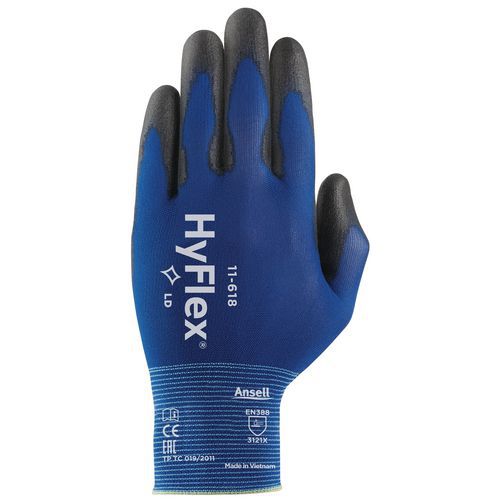 Nylon kesztyű Ansell HyFlex® 11-618 félig poliuretánba mártott, mérete 9