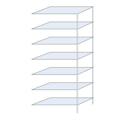 Ogmios fém polcállvány, hozzáépíthető, 300 x 130 x 60 cm, 2300 kg, 7 polc, 150 kg/polc, horganyzott Ogmios fém polcállvány, hozzáépíthető, 300 x 130 x 60 cm, 2300 kg, 7 polc, 150 kg/polc, horganyzott