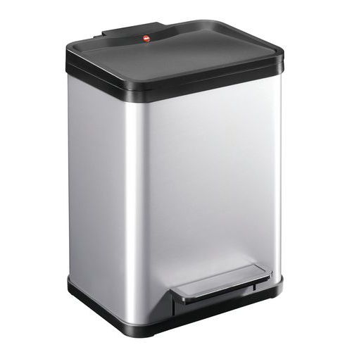Téglalap alakú pedálos kuka fekete műanyag fedéllel és csendes zárással. Két kivehető műanyag béléssel a hulladék szétválasztásához.