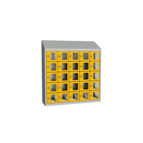 Olaf hegesztett szekrény személyes tárgyakra áttetsző ajtóval, 25 box, hengerzár, szürke/sárga