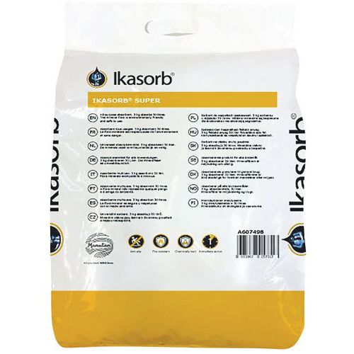 | Termék neve | Ömlesztett abszorbens Ikasorb Super, felitató kapacitás 30 l, csomagolás 3 kg |