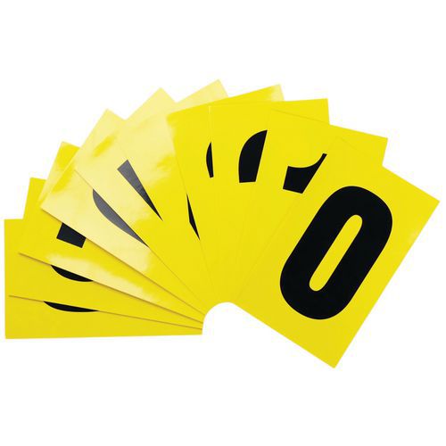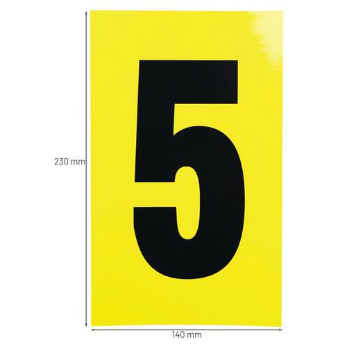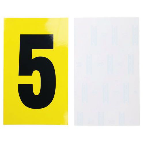 A vinilből készült, fekete számjegyeket sárga alapon nyolc különböző méretben szállítjuk. Tíz különböző számjegy 0-tól 9-ig nagyon jól látható, és egyszerűen alkalmazható. Levételkor nem hagynak nyomot. Használhatók irodában, raktárakban és gyártóüzemekben. A csomagolás 10 ívet tartalmaz, a címkék mennyisége a címkemérettől függően változik. kivitel típusa: öntapadós színe: sárga anyaga: műanyag címkék száma az ívben: 1 - 168 csomagolás: 10 ív