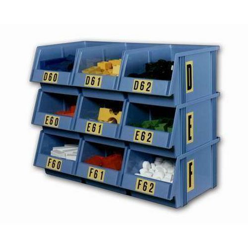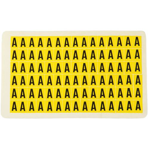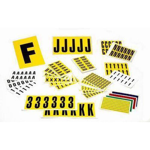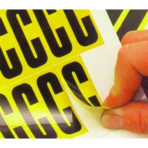 A vinilből készült, fekete betűket sárga alapon nyolc különböző méretben szállítjuk. Huszonhat különböző betű A-tól Z-ig nagyon jól látható, és egyszerűen alkalmazható. Levételkor nem hagynak nyomot. Használhatók irodában, raktárakban és gyártóüzemekben. A csomagolás 26 ívet tartalmaz, a címkék mennyisége a címkemérettől függően változik.
