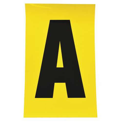 A vinilből készült, fekete betűket sárga alapon nyolc különböző méretben szállítjuk. Huszonhat különböző betű A-tól Z-ig nagyon jól látható, és egyszerűen alkalmazható. Levételkor nem hagynak nyomot. Használhatók irodában, raktárakban és gyártóüzemekben. A csomagolás 26 ívet tartalmaz, a címkék mennyisége a címkemérettől függően változik. kivitel típusa: öntapadós színe: sárga anyaga: műanyag címkék száma az ívben: 1 - 168 csomagolás: 26 ív