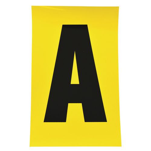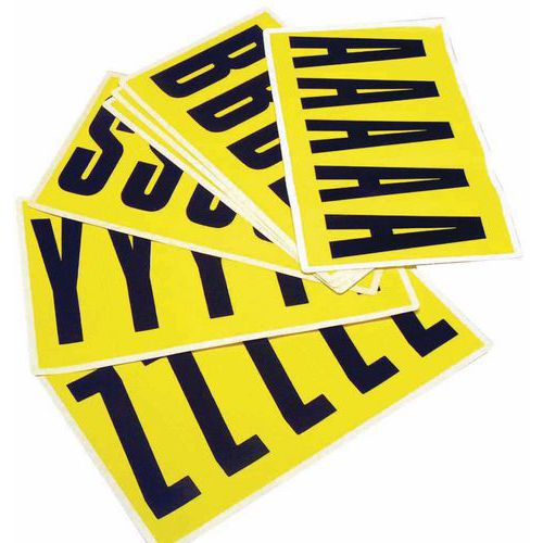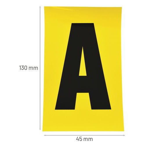 A vinilből készült, fekete betűket sárga alapon nyolc különböző méretben szállítjuk. Huszonhat különböző betű A-tól Z-ig nagyon jól látható, és egyszerűen alkalmazható. Levételkor nem hagynak nyomot. Használhatók irodában, raktárakban és gyártóüzemekben. A csomagolás 26 ívet tartalmaz, a címkék mennyisége a címkemérettől függően változik. kivitel típusa: öntapadós színe: sárga anyaga: műanyag címkék száma az ívben: 1 - 168 csomagolás: 26 ív