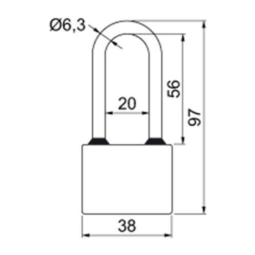 Öntöttvas lakat meghosszabbított kengyellel, kengyelátmérő 6,3 mm, magasság 62,5 mm, SU4 Öntöttvas lakat meghosszabbított kengyellel, kengyelátmérő 6,3 mm, magasság 62,5 mm, SU4