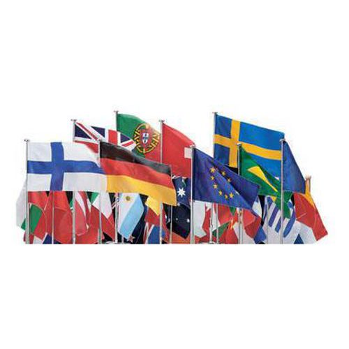 Varratmentes, nem bontható PES zászlószövetre nyomtatott országzászlók. Az ellenálló anyag biztosítja a nyomat állóságát és az UV-sugárzás szembeni ellenállást. Rögzítés az árbochoz karabinerrel a zászló rövidebb oldalán. További országzászlók és méretek kérésre.