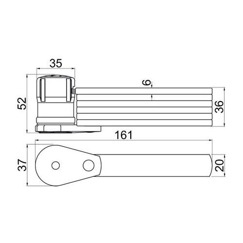 Összecsukható biztonsági lamellás zár. 6 mm-es acéllapok műanyag tokokban. Zárbetét 8 rugós lamellával, és fedéllel a szennyeződések ellen.