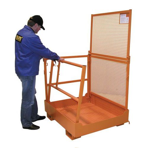 Összecsukható munkakosár targoncák számára az ellenőrzési, karbantartási és kiszolgáló munkákhoz.