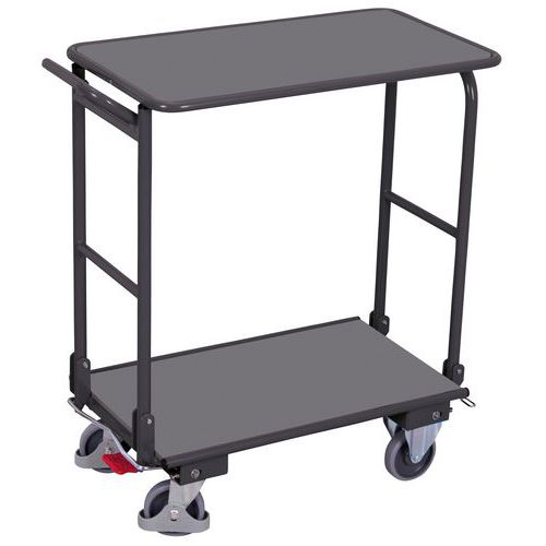 Összecsukható polcos kocsi acél szerkezettel. MDF lapból készült ágy. Két fix és két forgó kerék EasySTOP fékkel. Szürke, nyommentes, termoplasztikus gumi kerekek műanyag felnin, precíziós golyóscsapágyakkal, lábvédelemmel. Vázfelület-kezelés RAL skála szerinti porfestékkel. Ütés- és karcálló. Szerelés : Szereléshez Teherbírás (kg) : 250 kg