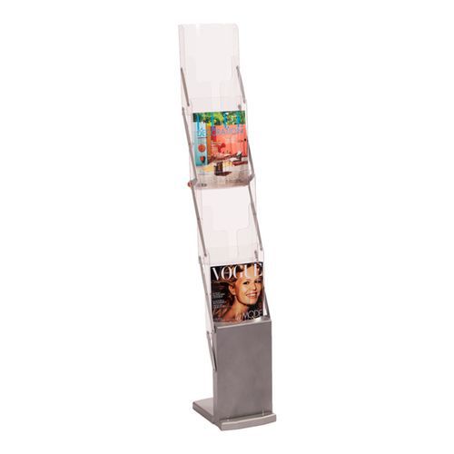A Deluxe brosúratartó stabil és elegáns helyet biztosít anyagainak. A gyors összeszerelés lehetővé teszi az azonnali használatot. A masszív konstrukció hosszú távú megbízhatóságot biztosít. Ideális szállodákba, kiállításokra és közterületekre.