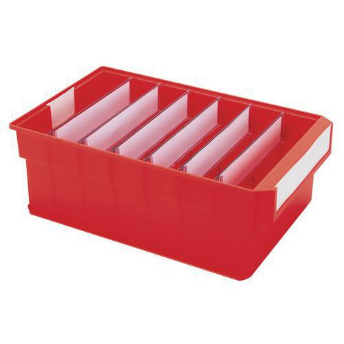 Az osztórekeszek a hosszanti elválasztásra és a doboz terének teljes kihasználására szolgálnak. Az osztórekesz szélességben is felosztja a dobozt, amivel javítja a doboz tárolási térfogatának kihasználhatóságát. Alkalmas a 7 cm magas dobozokra. 10 db-os csomagolásban szállítjuk.