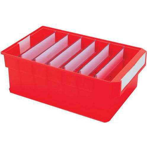 Az osztórekeszek a hosszanti elválasztásra és a doboz terének teljes kihasználására szolgálnak. Az osztórekesz szélességben is felosztja a dobozt, amivel javítja a doboz tárolási térfogatának kihasználhatóságát. Alkalmas a 7 cm magas dobozokra. 10 db-os csomagolásban szállítjuk.