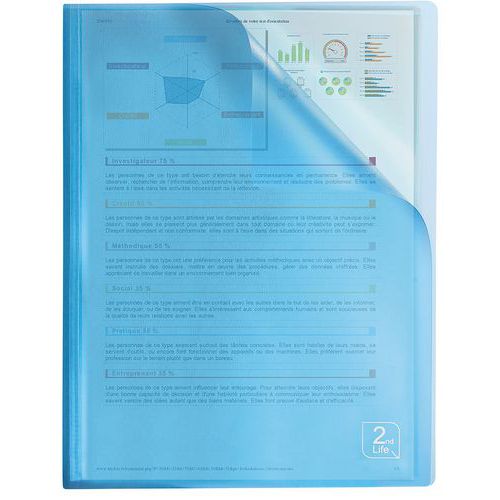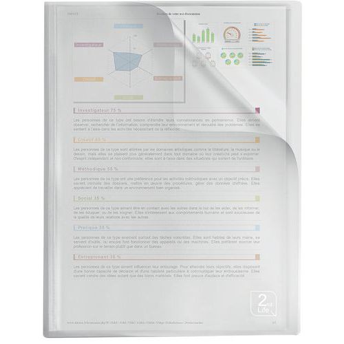 Átlátszó mappák A4 formátumú dokumentumokhoz. Öt szín keveréke (zöld, szürke, lila, piros és kék). Átlátszó elülső és hátsó oldal a dokumentumok egyszerű tájékozódásáért. Vastagság 0,5 mm.