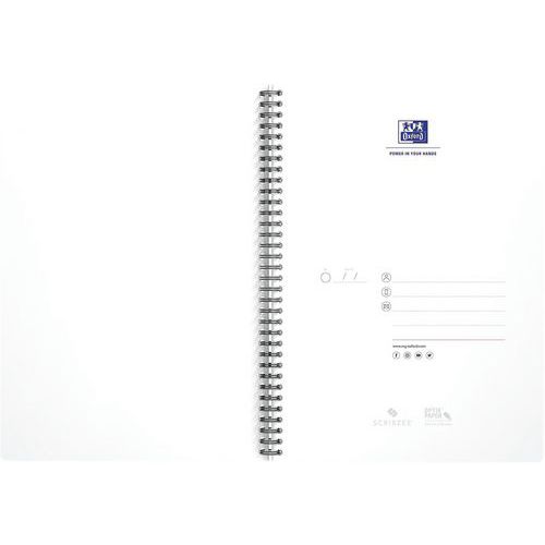Sima fehér papír a nagyobb írási kényelemért. Kétoldalas, sima, átlátszatlan polipropilén borító. A borító karc-, fröccsenés- és szakadásálló. Az 5 mm-es négyzet alakú oldalakon cím- és dátumfejléc található a tartalom egyszerű azonosítása érdekében, a bal oldalon pedig dupla margó a jegyzetek számára. Tartós kéthuzalos kötés, amely lehetővé teszi a notebook teljes kinyitását a maximális rugalmasság és használat kényelméért. Az OXFORD által tervezett egyedi, ultrasima papír, amely nem engedi át a tintát.