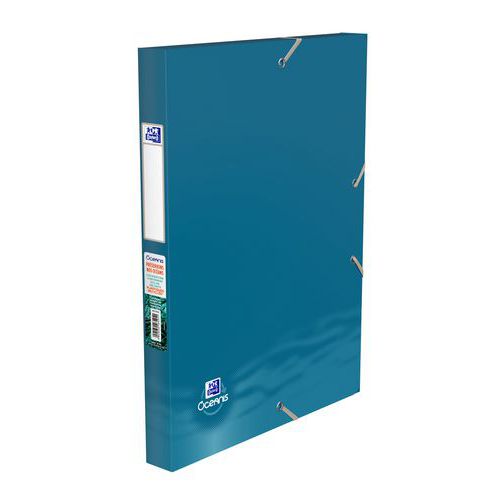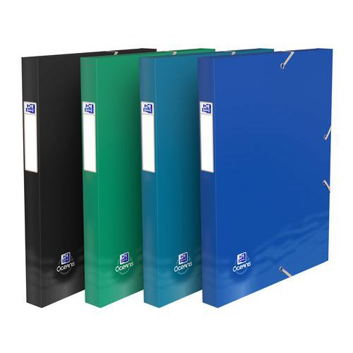 Az Oceanis doboz mérete 24 × 32 cm, és a 25 mm széles gerincnek köszönhetően körülbelül 200 A4-es lap befogadására alkalmas. A robusztus és tartós műanyag tárolódoboz biztosítja dokumentumai hosszú távú tárolását. Lapos, rugalmas záródással rendelkezik. A hátoldalon található öntapadós címke megkönnyíti a dokumentumok azonosítását. 4 átlátszatlan színben kapható: kék, türkiz, smaragdzöld, fekete. Újrahasznosított PP-ből készült.