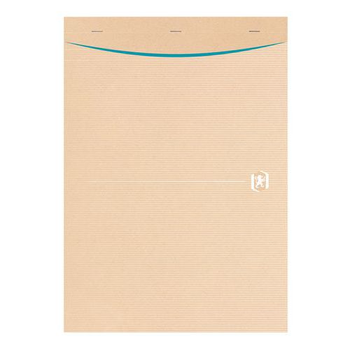 100%-ban újrahasznosított anyagból készült írótömb a kényelmes írásért. Perforálatlan lapok. Puha, átlátszatlan csomagolás kraft kartonból. Drótkötés.