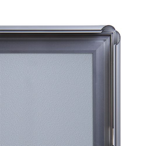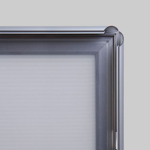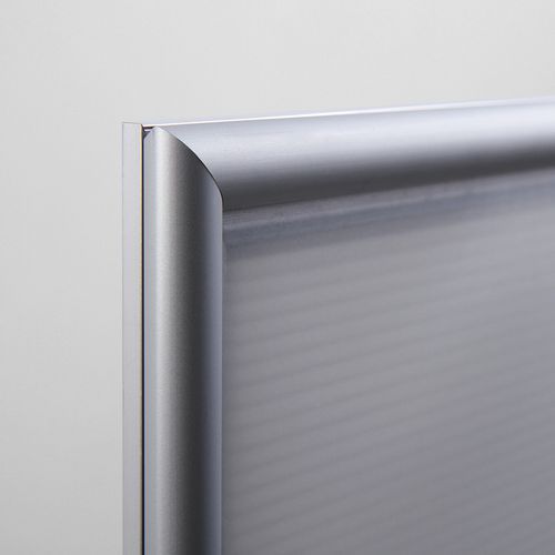 A plakáttartók 15 mm keretprofillal és hegyes sarkokkal alkalmasak szórólapok, fényképek, plakátok, speciális ajánlatok stb. bemutatására. A plakáttartók eloxált alumíniumból és tükröződésgátló fóliából készülnek UV-szűrővel, mely véd az UV-sugárzással és az esetleges karcolásokkal szemben. A könnyű alumínium keretek lehetővé teszik a könnyű kezelést és kiváló tartósságot. A keretek a vékony kivitelnek köszönhetően nem lógnak be a térbe.