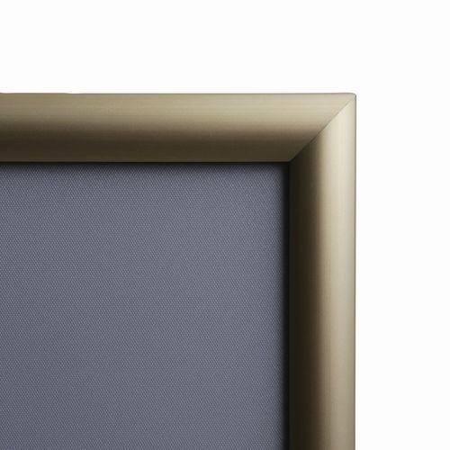 Az arany plakátkeretek alkalmasak szórólapok, fényképek és plakátok bemutatására. A plakát könnyen és gyorsan cserélhető az oldalsó alumínium profilok lepattintásával. A hátsó fal szürke műanyagból, elülső fényvisszaverő UV fólia. Vízszintesen és függőlegesen is elhelyezhető.