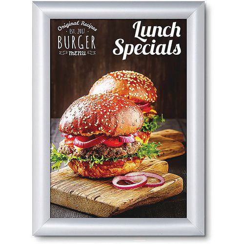 A plakáttartók 25 mm profillal alkalmasak szórólapok, fényképek, plakátok, speciális ajánlatok stb. bemutatására. Tartalma könnyen és gyorsan cserélhető az oldalsó alumínium profilok lepattintásával. A plakáttartók alumíniumból készülnek műanyag hátlappal és fényvisszaverő fóliából UV-szűrővel, mely véd az UV-sugárzással és az esetleges karcolásokkal szemben. Vízszintesen és függőlegesen is elhelyezhető. A keretek a vékony kivitelnek köszönhetően nem lógnak be a térbe.