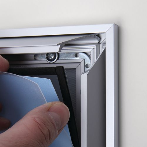 A plakáttartók 37 mm keretprofillal alkalmasak szórólapok, fényképek, plakátok, speciális ajánlatok stb. bemutatására. A szerkezetére való tekintettel több keret is egymásra helyezhető, a tartalom mégis könnyen kicserélhető. Tartalma könnyen és gyorsan cserélhető az oldalsó alumínium profilok lepattintásával. A plakáttartók alumíniumból készülnek műanyag hátlappal és vízálló fóliából UV-szűrővel, mely véd az UV-sugárzással és az esetleges karcolásokkal szemben. A keretek a vékony kivitelnek köszönhetően nem lógnak be a térbe.