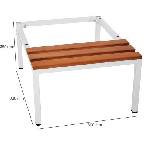 Acél szerkezetű pad fa ülőfelülettel fém öltözőszekrények alá. anyag: fa/fém méret ma x szé x mé: 35 x 60 x 80 cm ülőfelület szélesség: 30 cm szín: szürke RAL 7035, bézs RAL 1015