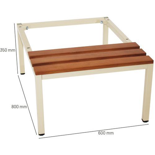 Acél szerkezetű pad fa ülőfelülettel fém öltözőszekrények alá. anyag: fa/fém méret ma x szé x mé: 35 x 60 x 80 cm ülőfelület szélesség: 30 cm szín: szürke RAL 7035, bézs RAL 1015