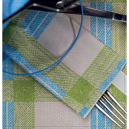 Papír evőeszköztartó Infibra, fehér kendővel, kocka kék/zöld