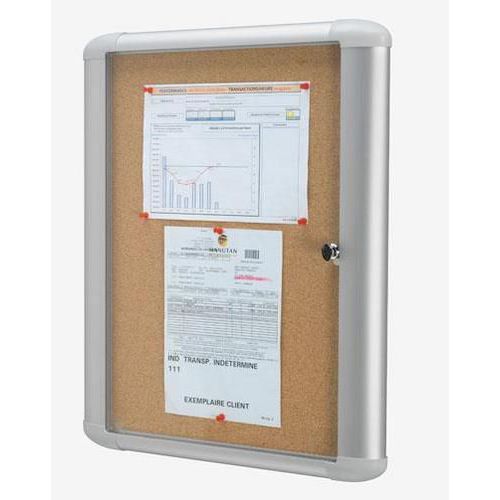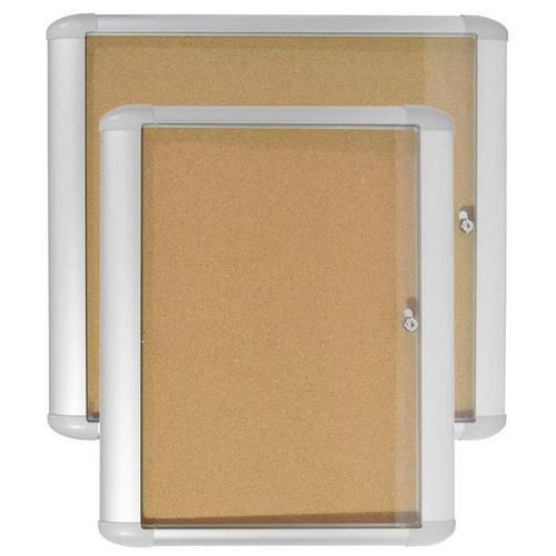 Parafa vitrinek lekerekített élekkel és eloxált alumínium kerettel beltérbe. Akril ajtó és 4 mm vastag biztonsági üveg. A vitrinek zárhatók, oldalsó nyitással.