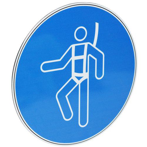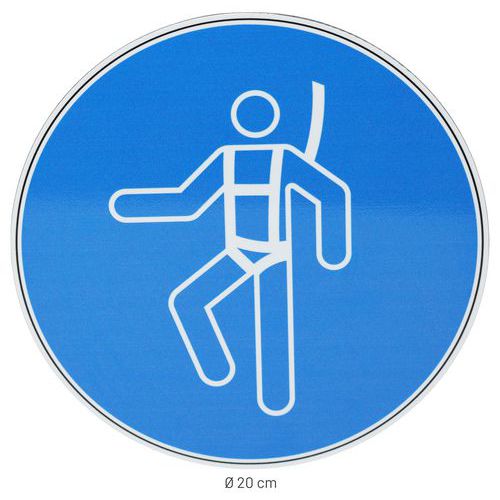 Parancstáblák jelzik a biztonsági heveder használatának kötelezettségét. Ez jelentősen elősegíti a biztonságosabb leesés kockázatával járó tevékenységek végzését. Alkalmas bármilyen sima, zsírtalanított és tiszta felületre való ragasztásra. Polimer laminálás – védi a nyomatot. a fizikai sérülésektől és kiszűri az UV sugarakat.
