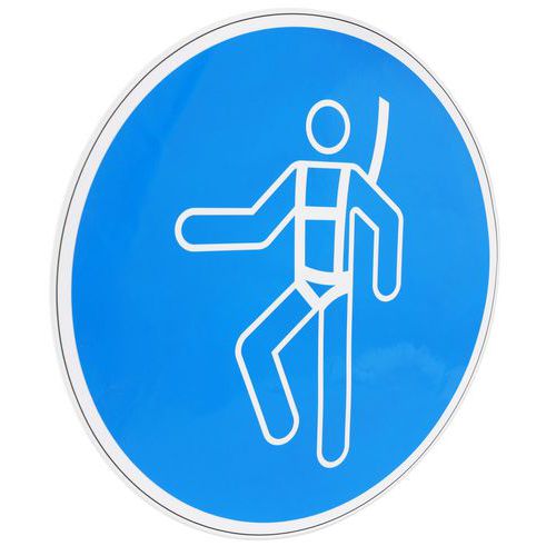 Parancstáblák jelzik a biztonsági heveder használatának kötelezettségét. Ez jelentősen elősegíti a biztonságosabb leesés kockázatával járó tevékenységek végzését. Alkalmas bármilyen sima, zsírtalanított és tiszta felületre való ragasztásra. Polimer laminálás – védi a nyomatot. a fizikai sérülésektől és kiszűri az UV sugarakat.