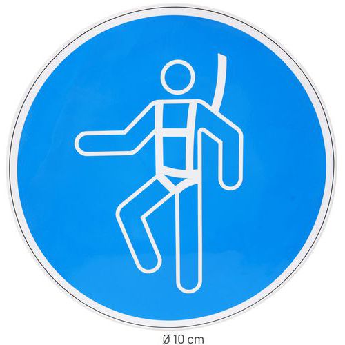 Parancsjelzés Manutan Expert - Használjon biztonsági hevedert, öntapadó, 100 mm Parancsjelzés Manutan Expert - Használjon biztonsági hevedert, öntapadó, 100 mm