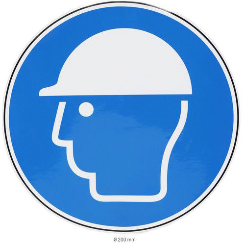 Ezek a kerek táblák emlékeztetnek a védősisak viselésének kötelezettségére. Bármilyen sima, zsírtalanított és tiszta felülethez való ragaszkodás. Polimer laminálás – megvédi a nyomatot a fizikai sérülésektől, és kiszűri az UV-sugarakat. Gyártói garancia az ügyfélnek : 10 év