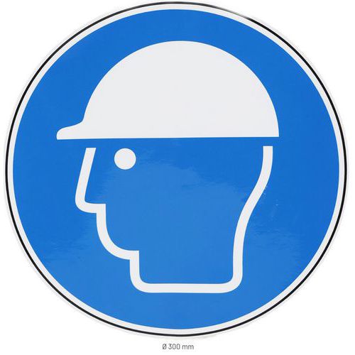 Ezek a kerek táblák emlékeztetnek a védősisak viselésének kötelezettségére. Bármilyen sima, zsírtalanított és tiszta felülethez való ragaszkodás. Polimer laminálás – megvédi a nyomatot a fizikai sérülésektől, és kiszűri az UV-sugarakat. Gyártói garancia az ügyfélnek : 10 év