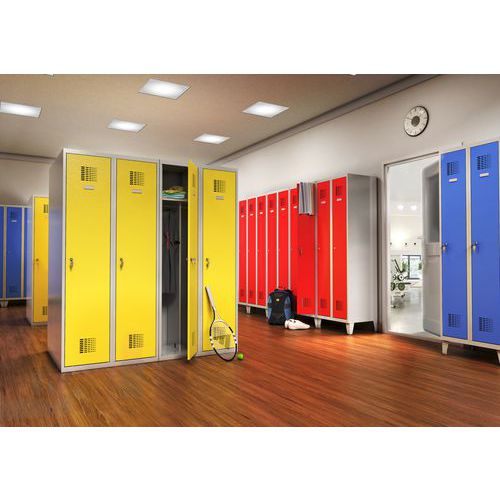 Az osztórekeszes hegesztett öltözőszekrények könnyített szerkezetűek, és jó stabilitást biztosító merevítésekkel vannak felszerelve.