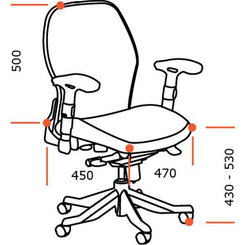 Modern irodai szék az ülőlap és a háttámla egymástól független dőlésszögének beállítását lehetővé tevő aszinkron háromkaros mechanikával. A háttámla magassága up-down reteszelő rendszerrel szabályozható. Az ülésmagasság gázrugó segítségével állítható. Az irodai szék puha padlófelületre való görgőkkel rendelkezik. Három színváltozatból választhat. A forgószék teherbírása 120 kg.