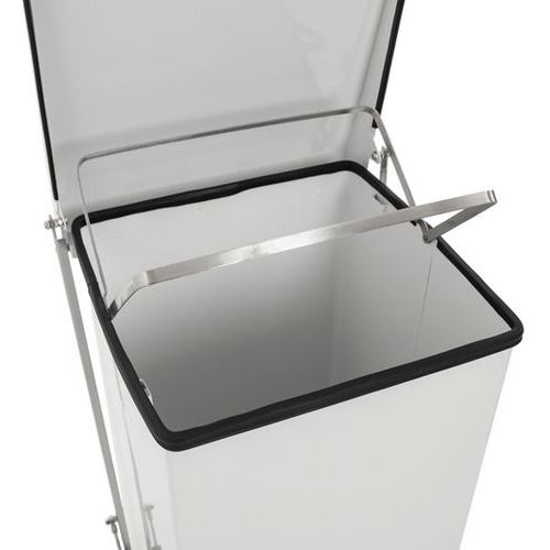 Rugalmas pedálos konténer. Pedálnyomással nyitható. Lágy zárórendszer a fedél fokozatos lezárásához. A tartályba integrált táskatartó. Lábakhoz rögzített konténertest. Tűz- és időjárásálló. Gyártói garancia az ügyfélnek : 1 év