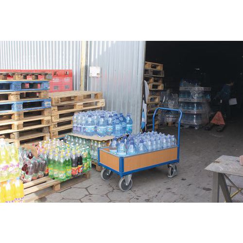 Platform kocsik fogantyúval és alacsony szilárd oldalakkal, 400 - 500 kg-ig