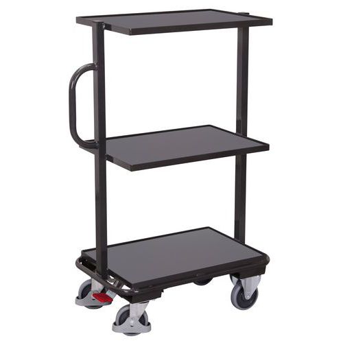 Polcos kocsi függőleges fogantyúval, 3 polccal, szürke