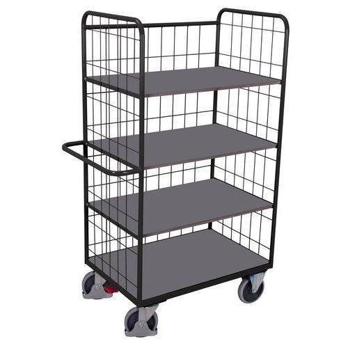 Polcos kocsik összecsukható polcokkal és 3 hálós fallal, 4 polccal