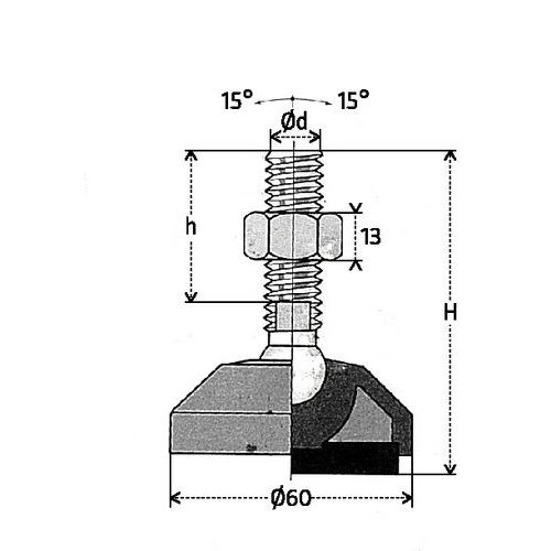 | Termék neve | Poliamid állítható láb, menetes rúd átmérő M16, rúd anyaga acél, rúd hossza 61 mm |