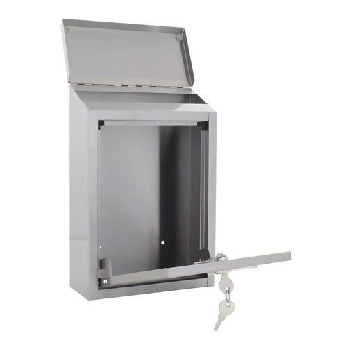 Acél postaláda három ablakkal, amelyekből könnyen látható, hogy tele van-e a postaláda. A felső nyílás A4-es méretig terjedő levelek számára. Címke névtábla elhelyezésére. Zárható elülső ajtó. Időjárásálló, a doboz kültéren és beltéren is elhelyezhető. Előfúrt lyukak a hátoldalon a falra szereléshez. Hengeres zár 2 kulccsal.
