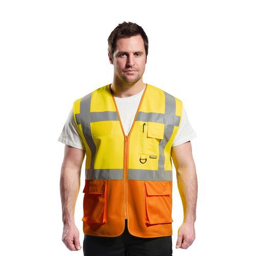 Forradalmi dizájn egyedi praktikus megoldásokkal. Többfunkciós zsebek azonosítókártyatartó zseb zippzáros záródás mobiltelefontartó zseb. A jól láthatósági citromsárga és narancssárga szín kiváló kombinációja.