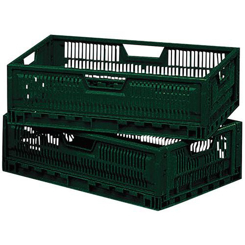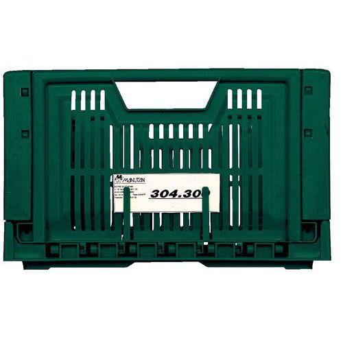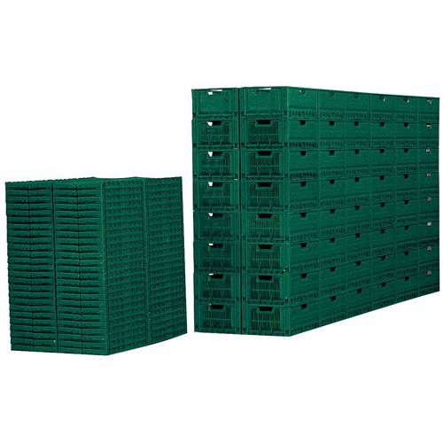 Gyorsan és egyszerűen összecsukható és szétnyitható. Összehajtható ládák, amelyek egymásra rakhatók és raklapokon tárolhatók szabványos európai termékekkel. Könnyen tisztítható a rejtett mélyedések nélküli kialakításnak köszönhetően. A belső falak élelmiszerrel érintkezve kezelve. A tartalom egyszerű azonosítása 2 címketartóval. Max. terhelés (kg) : 20 Gyártói garancia az ügyfélnek : 3 év